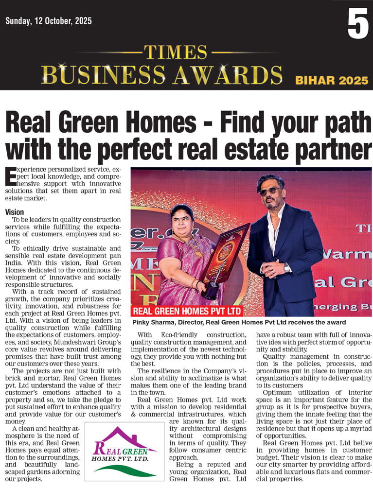 Real Green Homes Honored as Emerging Business Achiever – Times Business Awards 2025